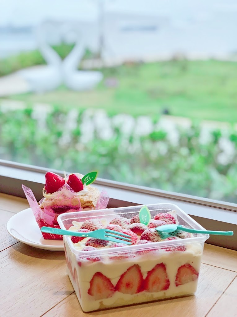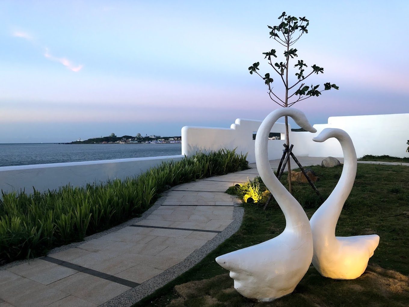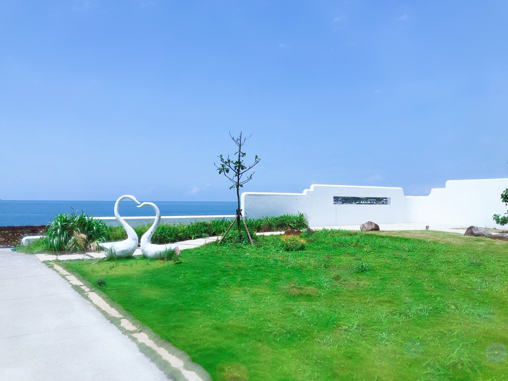 園區內大片草皮有著交織愛心的天鵝雕塑品,搭配海洋風情讓這裡盈滿浪漫氛圍。這裡除了玩水,也是間適合情侶約會的餐廳。
